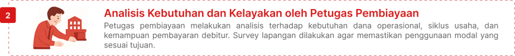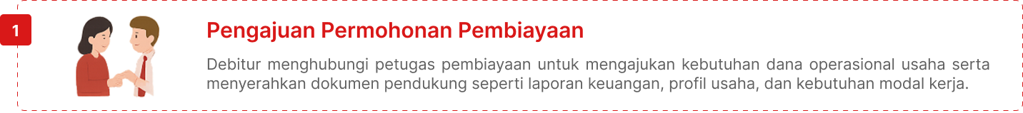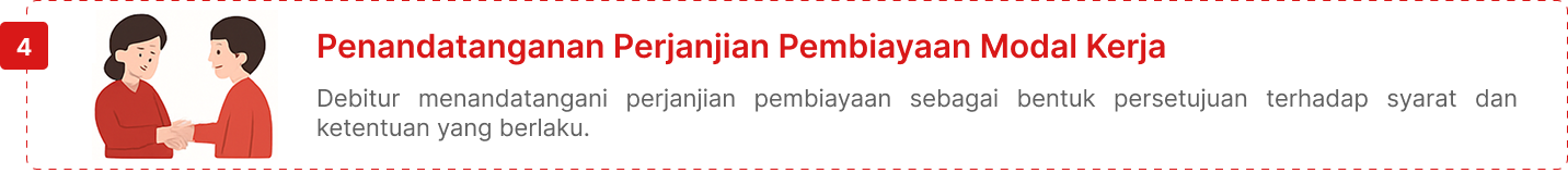 Pembiayaan untuk memenuhi kebutuhan pengeluaran-pengeluaran yang habis dalam satu siklus aktivitas usaha debitur. Pembiayaan Modal Kerja dilakukan dengan cara: