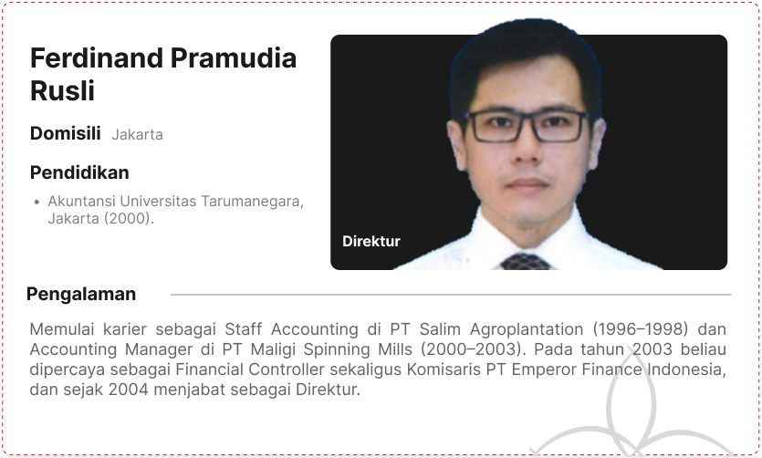DEWAN KOMISARIS & DIREKSI PT. EMPEROR FINANCE Indonesia